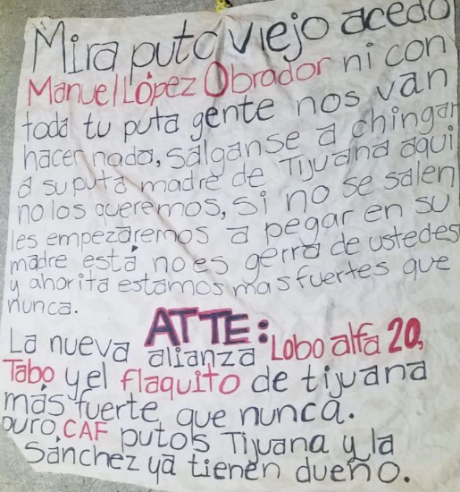 El Cártel Arellano Félix amenaza a AMLO con narcomanta en Tijuana (FOTO)