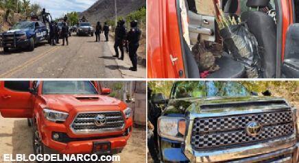 FOTOS Sicarios emboca a Fuerzas Federales, repelieron el ataque, 2 trocas fueron aseguradas