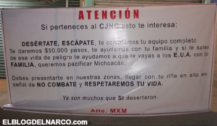Narcomantas invitando a desertar a los Sicarios del CJNG, al parecer los Carteles unidos ya no pueden con ellos