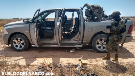 Marinos hallan camionetas y armas que sicarios abandonaron en Caborca, Sonora