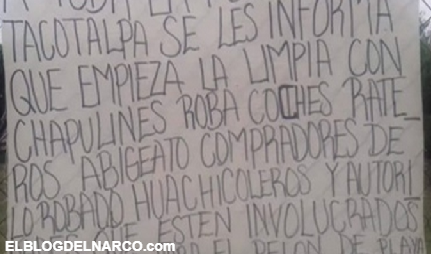 “A toda la población empieza la limpia, Con Narcomantas el CJNG anuncia llegada a Teapa y Tacotalpa, Veracruz