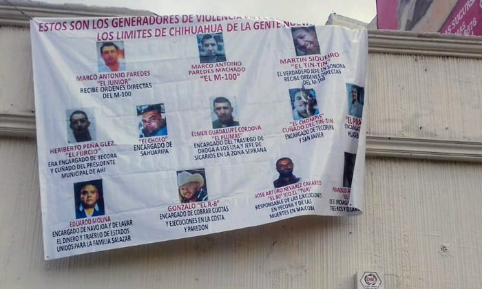 Colocan “narco mantas” para EL M-100 líder de la Gente Nueva (1)