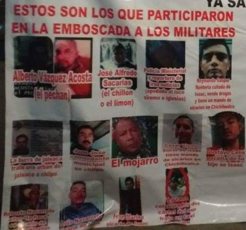 Una narcomanta exhibió a los sicarios del Cártel del Sur que ejecutaron a 3 militares en Guerrero (2)